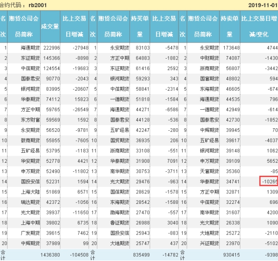 期螺持仓报告显示:多头榜单没有大的动作;空头华泰减空1万,名次由六下至十四;而大佬们依旧没什么大动作。