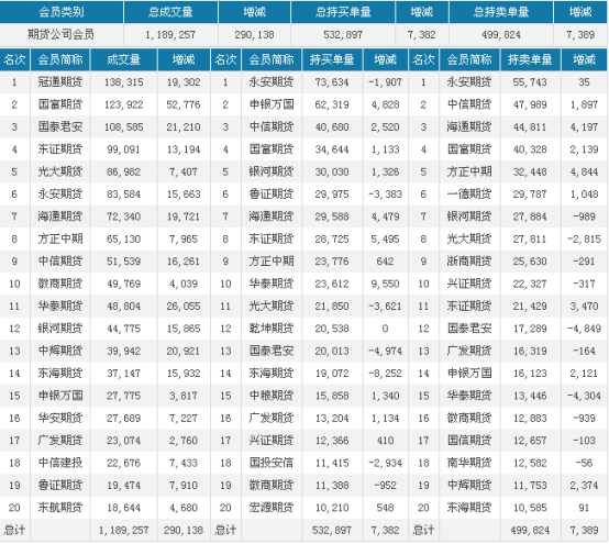 矿石方面:多空榜单均无大的操作。
