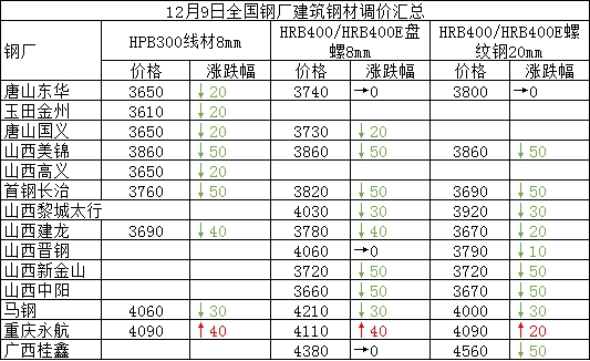 12月9日山东济钢闽源钢铁建筑钢材价格信息