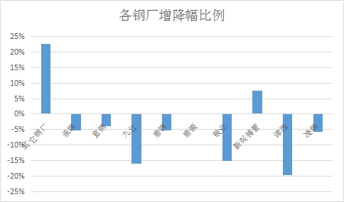 本周各厂资源增少降多。其中,宣钢降幅在4%,敬业降幅在15%,承钢降幅在5%,凌钢降幅在6%,津西降幅在20%,九江降幅在16%,唐钢降幅在5%,其他钢厂增幅在23%,新兴铸管增幅在7%。