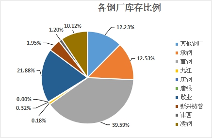 从各钢厂比例来看,排位较上周没有变化,前三分别是宣钢、敬业、承钢,其次是其他钢厂、凌钢、新兴铸管、津西、九江、唐钢和唐银。