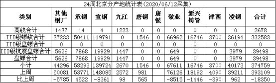 钢厂方面:敬业钢厂五条螺纹和一条盘螺产线在产,北京市场到货不多;宣钢钢厂四条螺纹产线和三条盘螺产线在产,北京市场到货不多;承钢高炉检修,两条螺纹产线和一条盘螺产线在产,北京市场整体到货量持续不足;东华钢厂螺纹产线在产,北京市场到货一般;鑫达钢厂三条螺纹产线在产,北京市场到货较多;津西钢厂半条螺纹产线在产,市场几乎无到货。