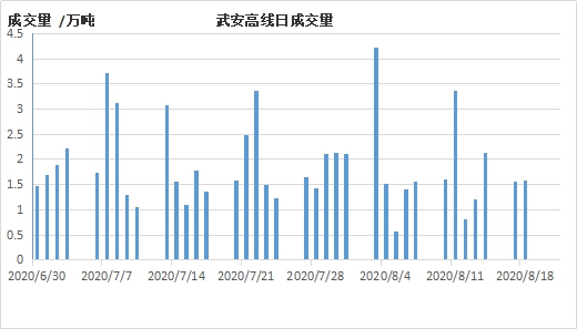 【兰格钢铁】8月18日实时监测:武安裕华、明芳、金鼎、鑫汇、新金、普阳、红日7家高线厂共计出货量为1.58万吨,约占日产量70%,比昨日增加0.01万吨。 今日武安线材价格维持平稳走势,成交一般。相关市场:螺纹钢期货维持震荡走势,尾盘出现小幅翘尾行情;唐山钢坯保持平稳。武安线材经销商积极出货,下游采购观望气氛较浓,大多按需采购。就目前形势看,预计明日武安线材价格继续维稳运行。(钢厂开票情况:裕华165票,明芳70票,金鼎130票,鑫汇50票,新金1票,普阳20票,红日17票)