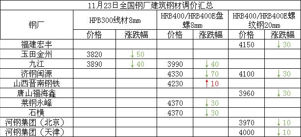 • 11月23日万泰特钢建筑钢材出厂调价信息