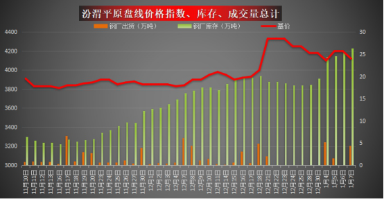 期货方面:今日黑色系集体上涨,螺纹铁矿焦炭涨幅分别为:1.69%,3.06%,0.39%。消息面,12月下旬钢铁企业生产粗钢环比下降1.76%;钢材库存量环比下降10.95%。盘面上,螺纹今天多空博弈,最后收盘站稳4400,空间虽已打开,不过成交量略显不足。铁矿在基本面支撑下继续反弹,焦炭整体成交量有所减弱,场内资金还是有恐高情绪,目前高位多空分歧较大,谨慎看多。 现货方面:今日汾渭平原盘线指数4120,较昨日跌80。期货大涨,现货市场低价成交好转。由于钢厂库存压力的增加,今天价格大幅下调。不过由于期货上涨,市场情绪有所好转,成交明显回暖。