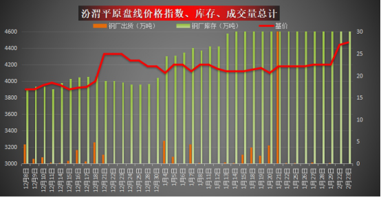 汾渭平原今日盘线基础价格指数:4470,较昨日涨30。 【兰格钢铁】汾渭平原盘线价格指数-调价:主导钢厂山西高义4470较昨日涨30,立恒当日报价4470较昨日涨30。 【兰格钢铁】汾渭平原盘线日成交量(万吨): | 时间 | 出货量 | | 周二 | 0 | | 周一 | 0 | | 周五 | 0.08 | | 周四 | 0 | | 周三 | 0.35 | | 周二 | 0 | | 周一 | 0.2 |