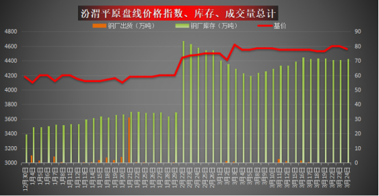 汾渭平原今日盘线基础价格指数:4560,较昨日跌40 。 【兰格钢铁】汾渭平原盘线价格指数-调价:主导钢厂山西高义4560较昨日跌40,立恒当日报价4560较昨日跌40。 【兰格钢铁】汾渭平原盘线日成交量(万吨): | 时间 | 出货量 | | 周三 | 0 | | 周二 | 0 | | 周一 | 0 | | 上周五 | 0 | | 上周四 | 0 | | 上周三 | 0.5 | | 上周二 | 1.5 | | 上周一 | 0 |