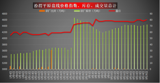 现货方面:今日汾渭平原盘线指数4600,较昨日涨40。由于今天期货高位震荡偏强,钢厂涨价意愿转强,不过成交并不乐观,主要还是以低价为主。目前库存压力还再继续增加,需求对高价支撑不足,预计明日价格或小幅下跌。