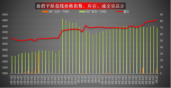 现货方面:今日汾渭平原盘线指数4820,较昨日涨50。由于今天期螺大涨,现货价格跟涨,市场交投氛围明显好转,高价成交顺畅。目前钢厂涨价意愿较强,预计明日价格或继续上涨。