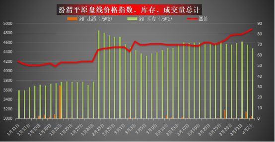 【兰格钢铁】独家实时监测:汾渭平原五家钢厂高线总库存66.5万吨,较昨日减3.5万吨,开工轧线10条。全天成交2.3万吨,较昨日成交(6.6万吨)减4.3万吨。