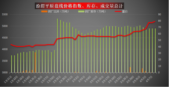 【兰格钢铁】独家实时监测:汾渭平原五家钢厂高线总库存68.4万吨,较昨日增0.3万吨,开工轧线10条。全天成交0万吨,较昨日成交(0.2万吨)减0.2万吨。