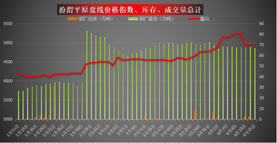 【兰格钢铁】独家实时监测:汾渭平原五家钢厂高线总库存66.7万吨,较昨日减1.1万吨,开工轧线11条。全天成交0万吨,较昨日成交(2.6万吨)减2.6万吨。