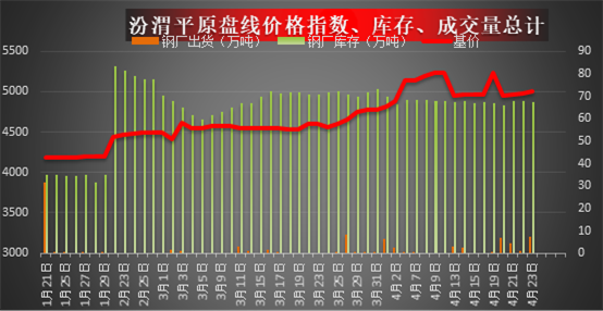 期货方面:螺纹钢2110收5299,涨1.67%,增仓128551手。热轧卷板2110收5590,涨0.85%,减仓10169手。焦炭2109收2591.5,涨0.12%,减仓1771手。铁矿石2109收1104.5,涨1.19%,增仓1534手。据中国钢铁工业协会统计数据显示,2021年4月中旬重点钢企粗钢日均产量232.42万吨,较2月下旬粗钢日均产量231.95万吨,增长0.2%,再次创出历史新高;旬环比增加5.03万吨,增长2.21%,同比增长19.10%。4月22日钢铁行业成立低碳工作推进委员会,将提前五年实现碳达峰;22日至23日举办的“领导人气候峰会”,习近平主席介绍了中国将力争2030年前实现碳达峰,2060年前实现碳中和的减排目标。从今日期货成交持仓来看,多头持仓占比78.5%,主力高度控盘,散户追涨要注意风险。05合约目前持仓119607手,螺纹钢在上海期货交易所指定交割仓库期货仓单数为9302吨,在消息面的掩护下,主力有利用资金优势拉涨10合约带动05合约上涨来实现逼仓的嫌疑。近期现货在需求放缓的情况下拉涨幅度有限,现货升贴水变化反映出商家对当下市场的悲观预期,短期关注现货贴水持续性,对期螺走势仍以谨慎看涨为主。 现货方面:今日汾渭平原盘线指数5010,较昨日涨30。今天期螺大涨,市场观望情绪减弱,商家拿货明显积极。由于期货走强,现货需求也有明显好转,刺激钢厂涨价意愿,预计明日价格或继续上涨。