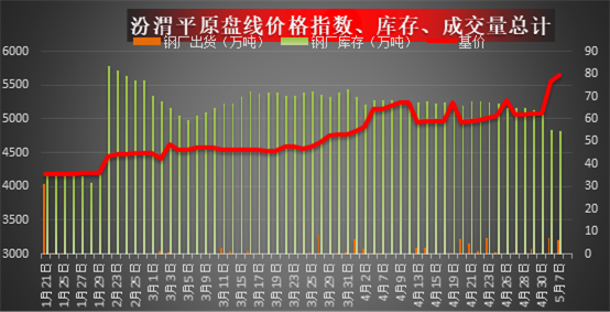 【兰格钢铁】独家实时监测:汾渭平原五家钢厂高线总库存54.6万吨,较昨日减0.5万吨,开工轧线10条。全天成交6.3万吨,较昨日成交(7万吨)减0.7万吨。