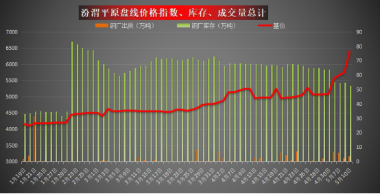 现货方面:今日汾渭平原盘线指数6400,较上周累涨650。由于今天期螺强势涨停,市场情绪再次被推高,尽管周末价格已经大涨,但是今天钢厂涨价意愿不降反增,且商家高价接货依然积极。目前在成本和需求的共同推动下,价格上涨仍有一定空间,预计明日价格或继续上涨。