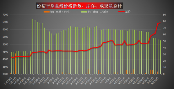 【兰格钢铁】独家实时监测:汾渭平原五家钢厂高线总库存51.3万吨,较昨日减1.4万吨,开工轧线10条。全天成交1万吨,较昨日成交(3.9万吨)减2.9万吨。