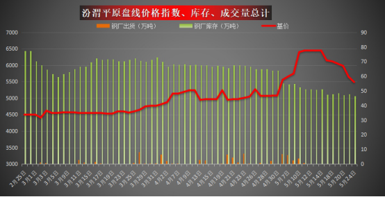 现货方面:今日汾渭平原盘线指数5490,较上周五跌160。今天期螺还是继续大幅下跌,钢厂也是被动大幅跟降,虽然与市场倒挂价格逐渐缩小,但由于商家基本是出货为主,所以依然不愿接货。目前钢厂出货意愿较强,但需求还没有好转的迹象,预计明日价格或继续下跌。
