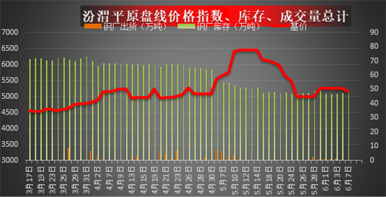 期货方面:螺纹钢2110收4959,跌4.17%,增仓25029手。热轧卷板2110收5252,跌4.13%,减仓2162手。焦炭2109收2499.5,跌3.62%,减仓10694手。铁矿石2109收1118,跌4.4%,减仓17721手。上周五美国非农数据不及市场预期,外盘相对利好,打消市场对货币政策收紧的担忧,支撑市场向上的因素仍在,重点关注美联储15日-16日的议息会议。据海关总署统计数据显示:5月钢材出口527.1万吨,环比下降33.86%,相比4月钢材出口量降幅明显,在出口受阻情况下内需压力渐增,短期期螺区间震荡为主。 现货方面:今日汾渭平原盘线指数5160,较上周五跌90。由于今天期螺早盘暴跌,市场交投氛围冷淡。尽管钢厂价格大幅下跌,商家还是谨慎观望。从市场了解,受高考影响,终端需求较弱。目前价格承压增大,成本支撑偏弱,预计明日价格或继续下跌。