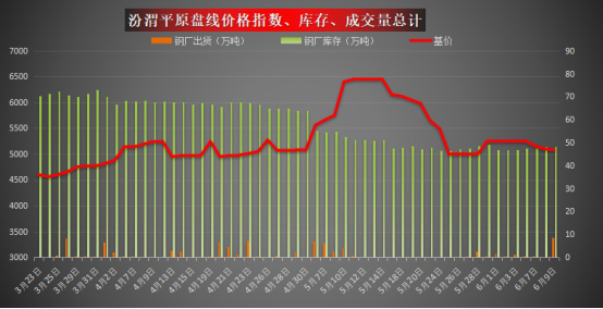 【兰格钢铁】独家实时监测:汾渭平原五家钢厂高线总库存48.2万吨,较昨日增0.1万吨,开工轧线10条。全天成交8.7万吨,较昨日成交(0万吨)增8.7万吨。