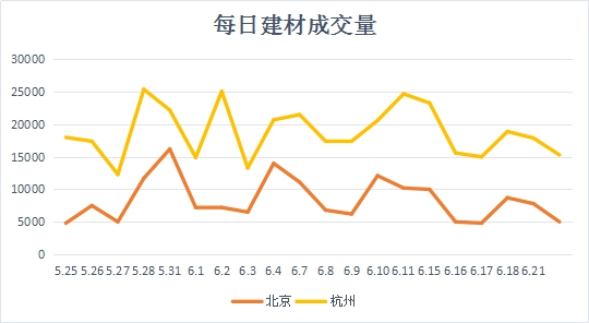 现货市场,北京今日市场价大幅下降,整体市场成交较弱,螺纹主流价格在4860元,10家大户出货量合计5000吨,较上周均值降1575吨。杭州建材市场价暴跌,中天报5850-5900元左右/吨。今日杭州建材市场价暴跌,中天报4840元左右/吨,据兰格钢铁网统计,6月21日杭州11家建材样本户合计成交15300吨,较上周均值降1550吨。广州市场主流价格大幅下降。目前一线资源主流价格在:一线4930-4940,二线4870-4900,三线4840-4860,市场成交一般。