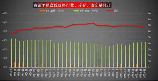 汾渭平原今日盘线基础价格指数:5250,较昨日跌30。 【兰格钢铁】汾渭平原盘线价格指数-调价:主导钢厂山西高义5250较昨日跌30,立恒当日报价5250较昨日跌30。 【兰格钢铁】汾渭平原盘线日成交量(万吨):
