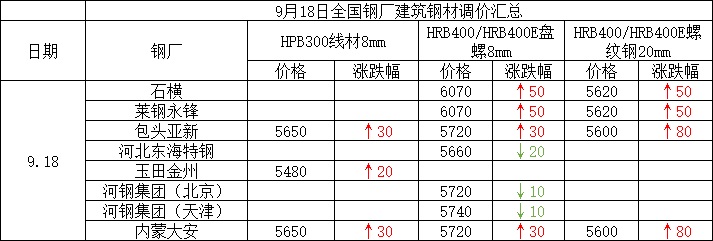 • 9月18日包头亚新建筑钢材出厂价格上调30元