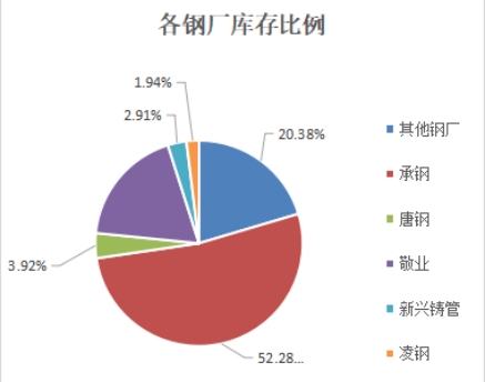从各钢厂比例来看,承钢第一,其他钢厂由于降库幅度不大,本周存量终于反超敬业跃居第二,敬业屈居第三,唐钢第四,2672凌钢分列五六。