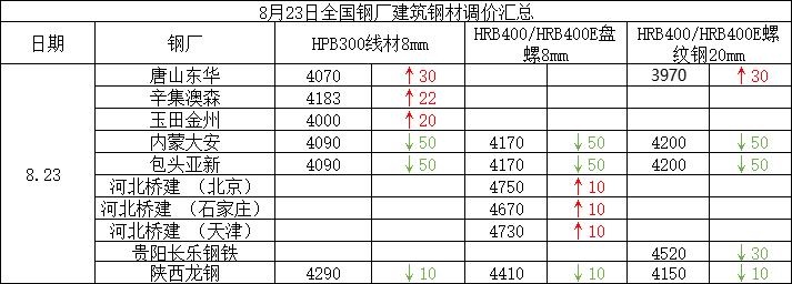 - 8月23日贵阳长乐钢铁建筑钢材出厂价格下降30元2022/8/23
