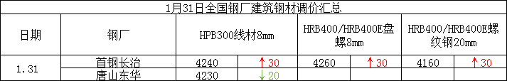 • 1月31日宁夏钢铁建筑钢材出厂价格平稳
