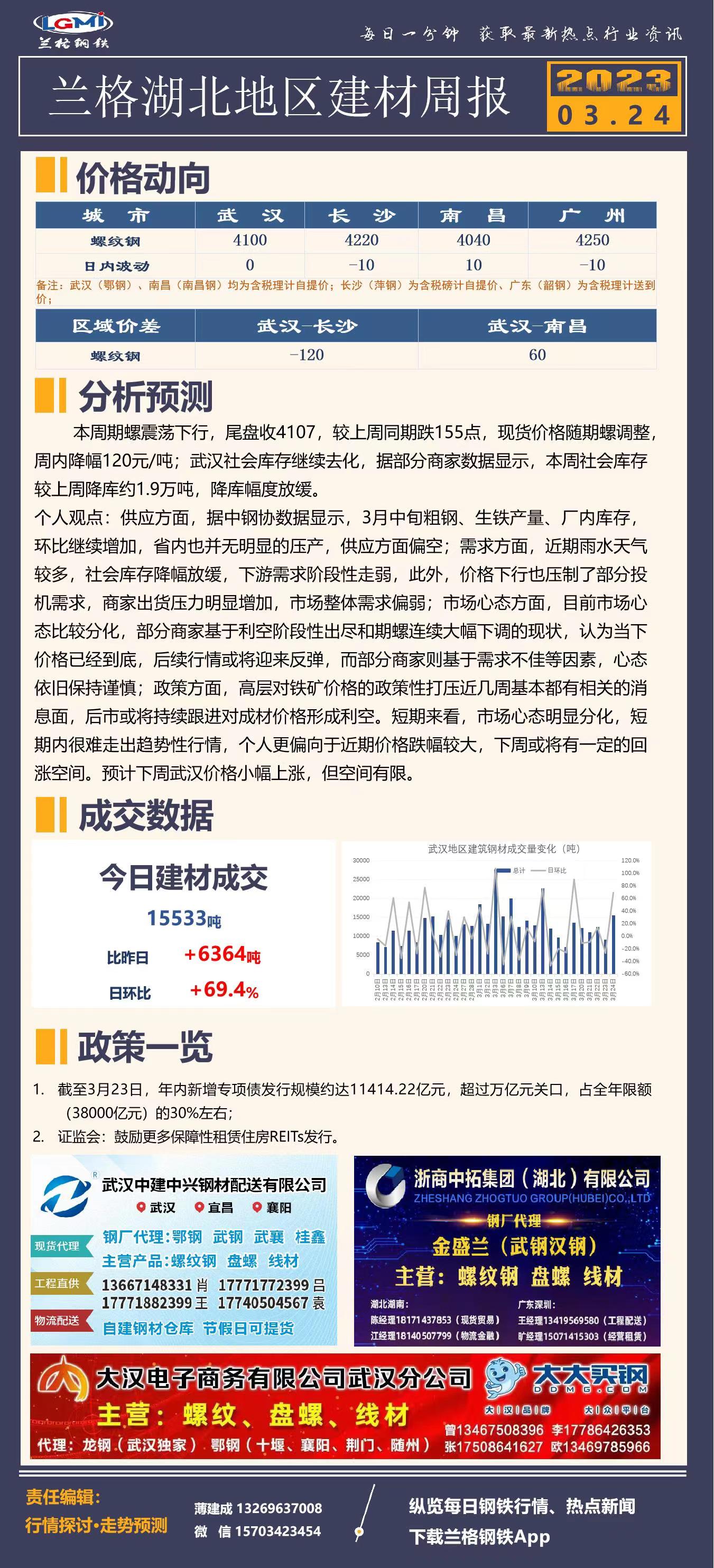 - 武汉建筑钢材库存统计(03.24)2023/3/24