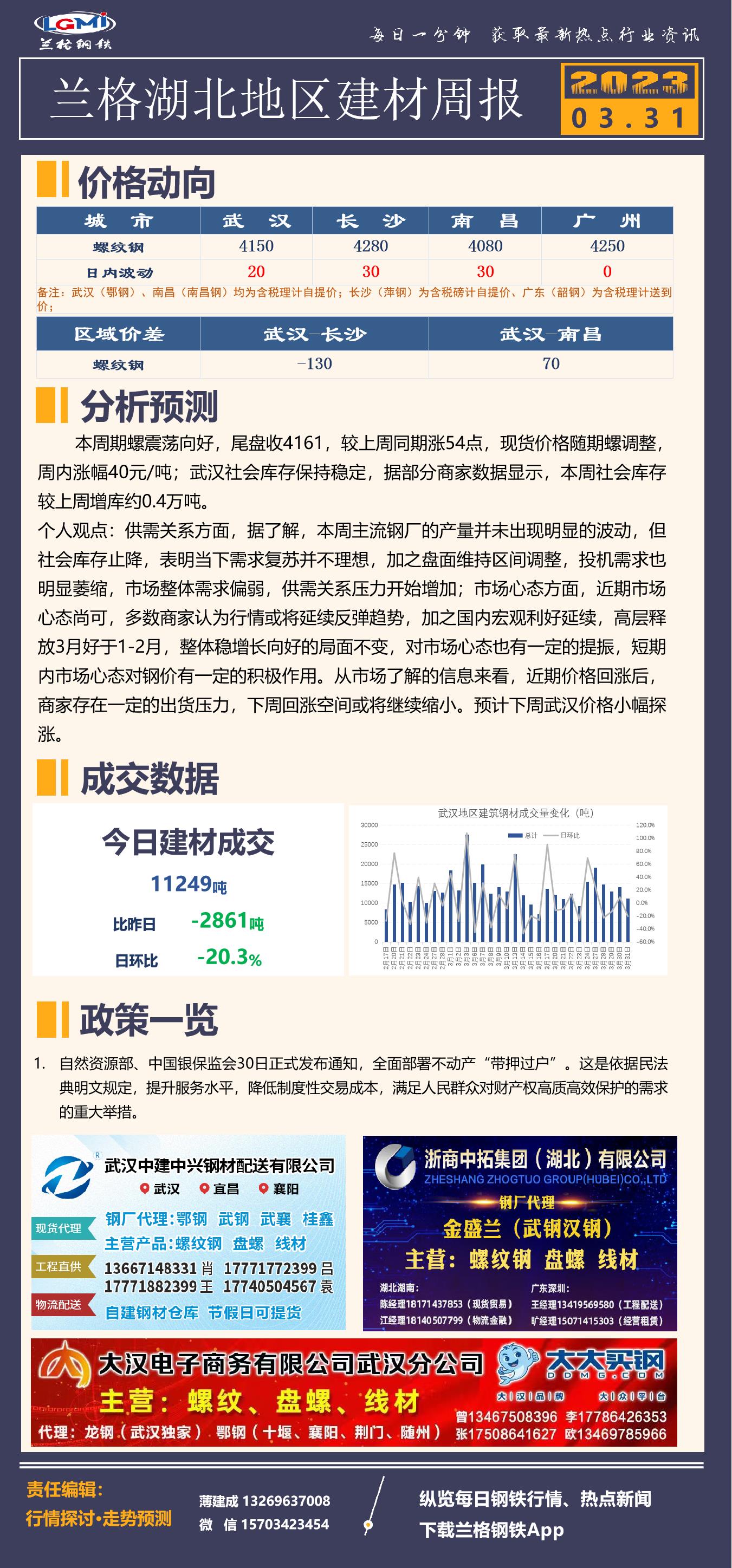 - 武汉建筑钢材库存统计(03.31)2023/3/31