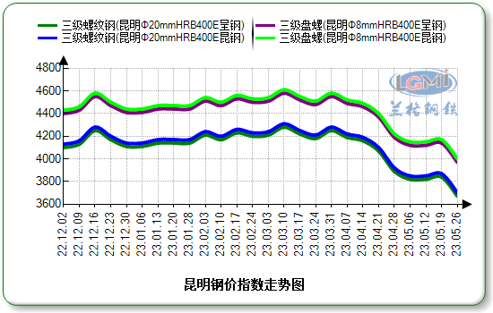 - 快讯:26日昆明市场建材价格下跌50元2023/5/26