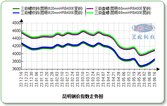 - 6月16日昆钢昆明区域建材指导价格平稳2023/6/16