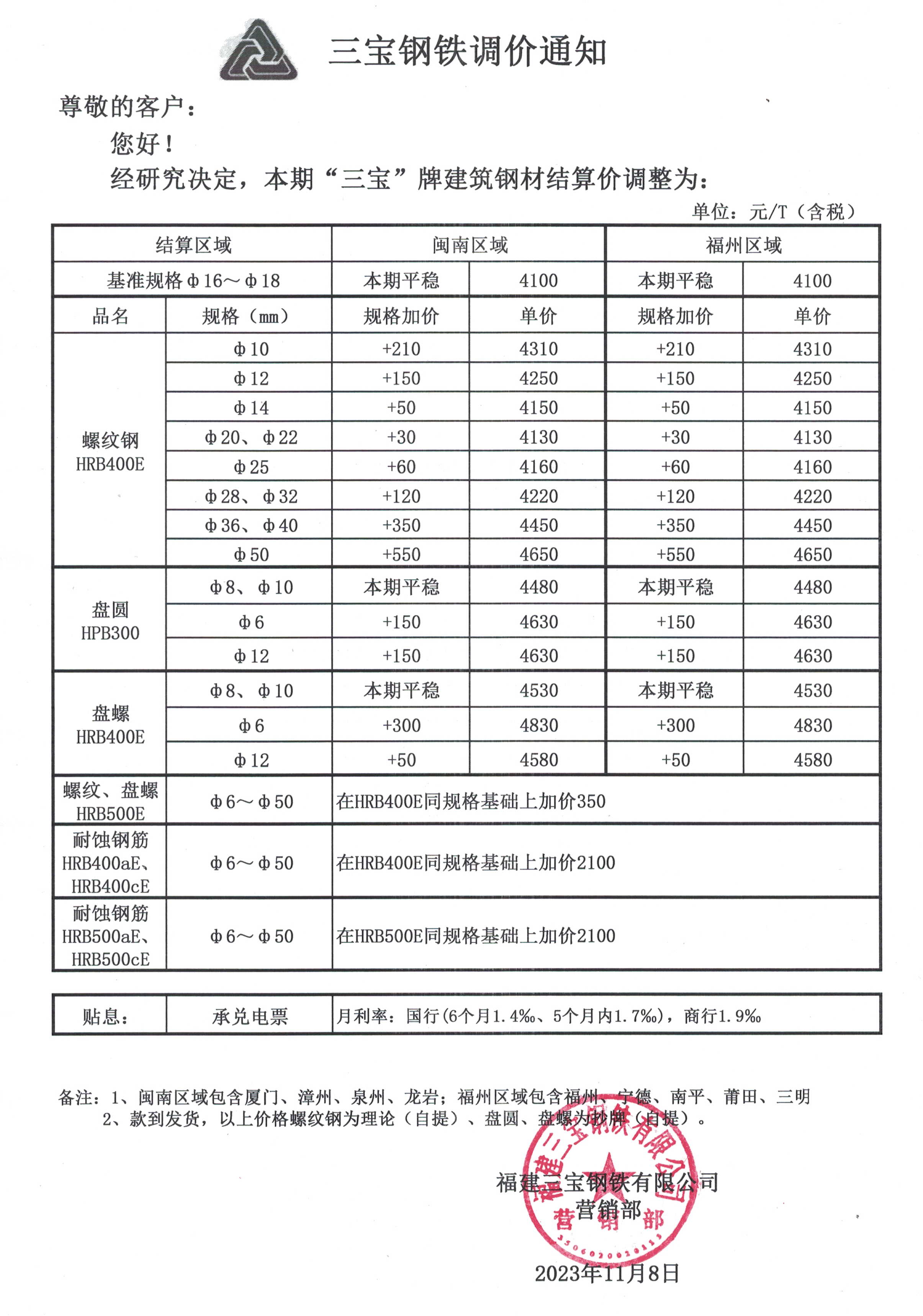 - 快讯:8日漳州建材价格下跌10元2023/11/8