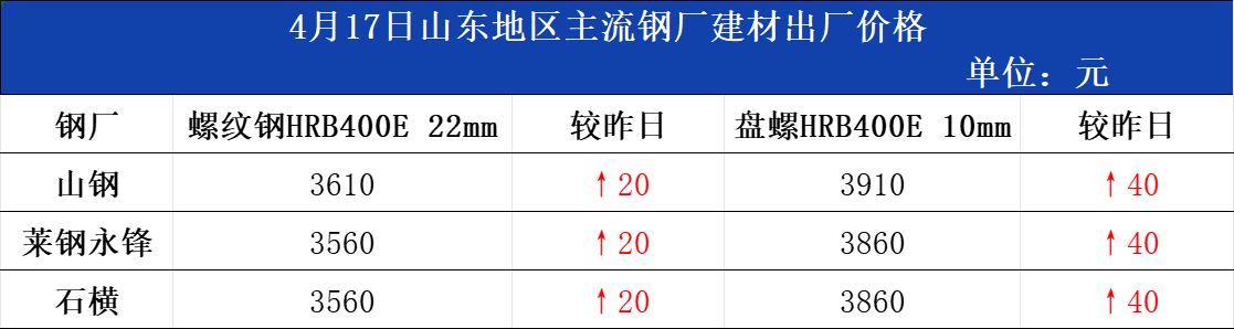 • 4月17日包头亚新建筑钢材出厂价格平稳