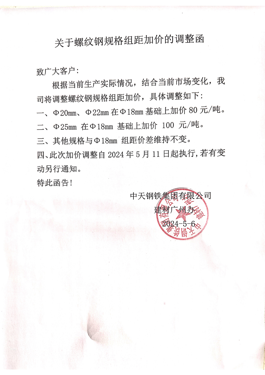 快讯:中天钢铁集团有限公司关于螺纹钢规格组距调整的通知