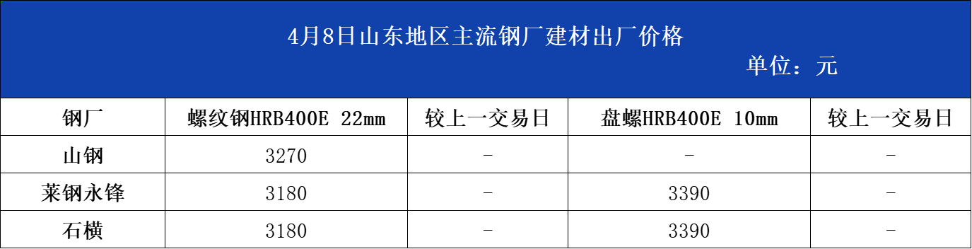 • 4月8日山东地区主流钢厂建材出厂价格