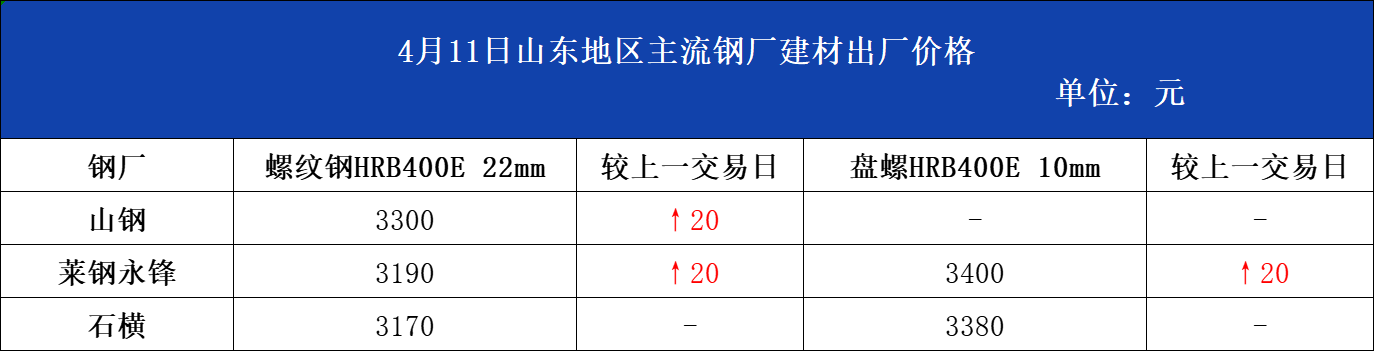 • 4月11日山东地区主流钢厂建材出厂价格