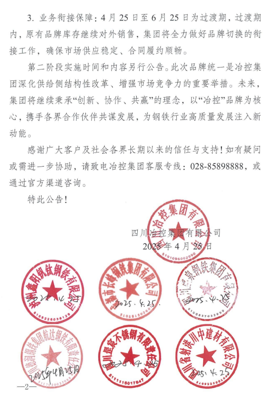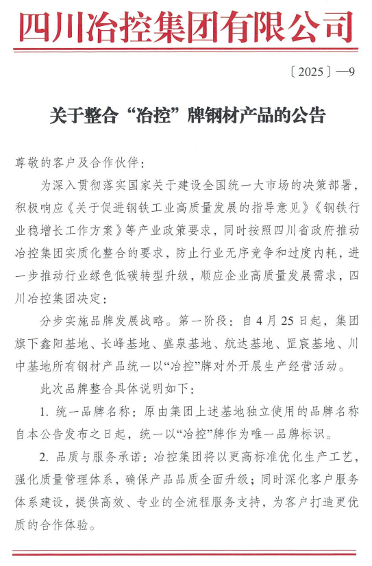 - 关于整合“冶控”牌钢材产品的通知2025/4/25