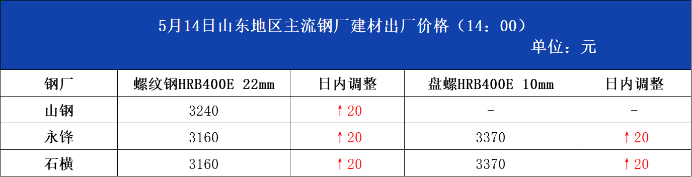 • 5月14日山东地区主流钢厂建材出厂价格(14:00)