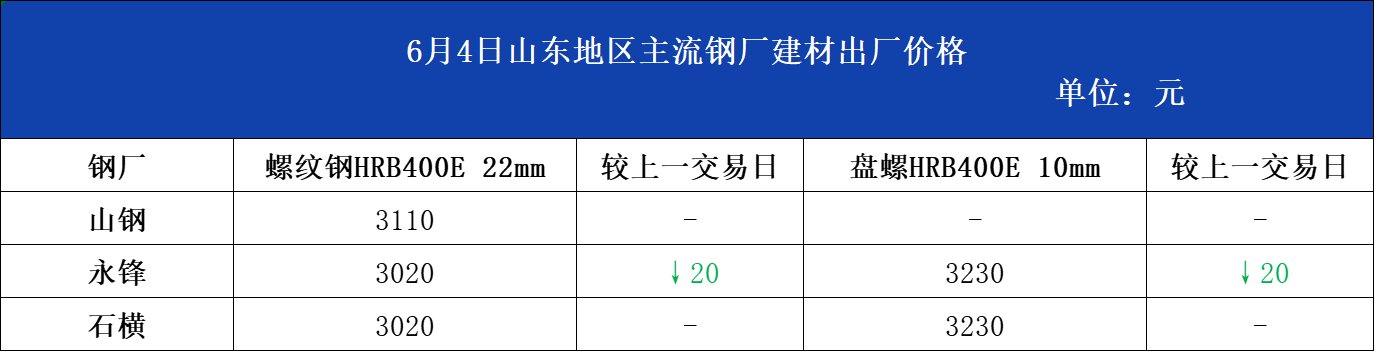 • 6月4日山西晋南钢铁建筑钢材出厂价格平稳
