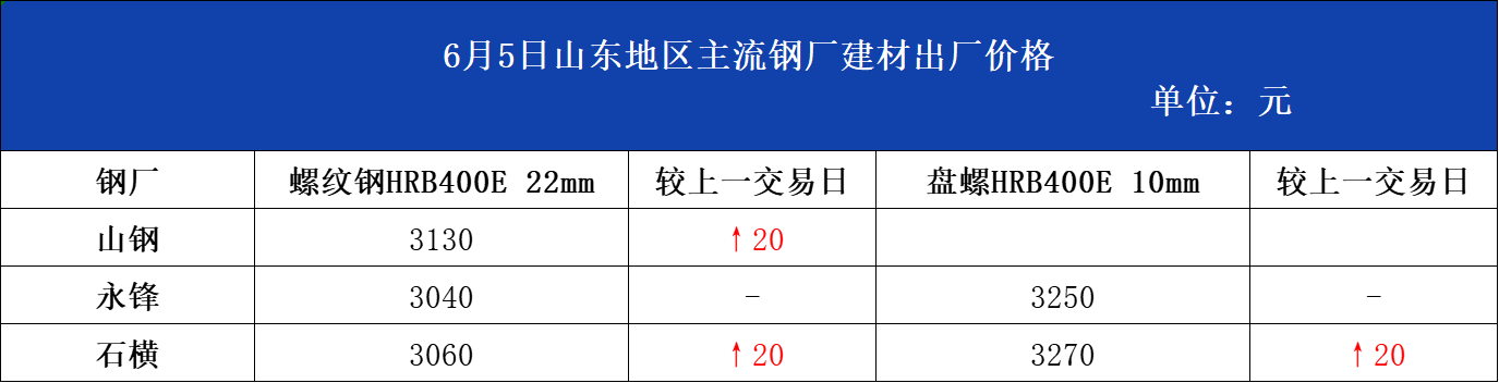 • 6月4日山东地区主流钢厂建材出厂价格(15:00)