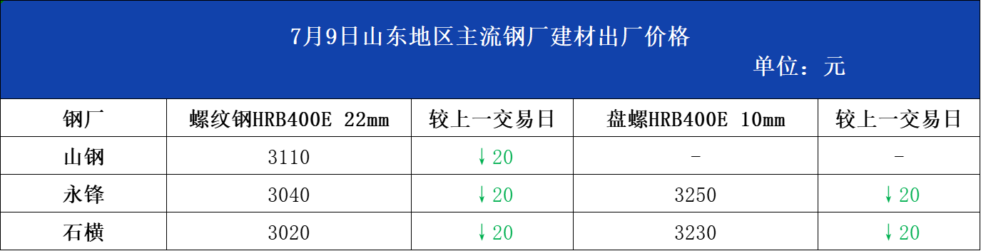 • 7月9日山东地区主流钢厂建材出厂价格