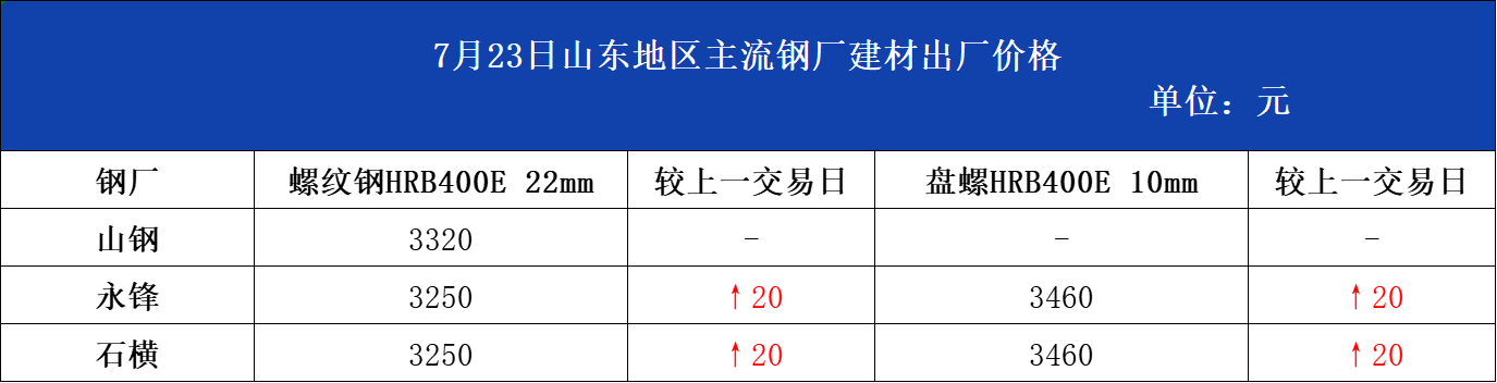 • 7月22日(14:30)山东地区主流钢厂建材出厂价格