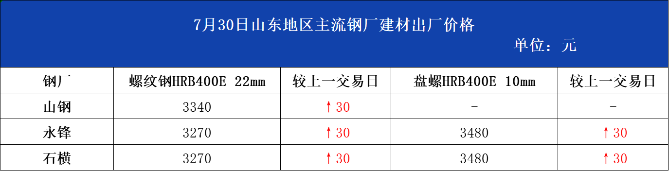 • 7月30日山西晋南钢铁建筑钢材出厂价格
