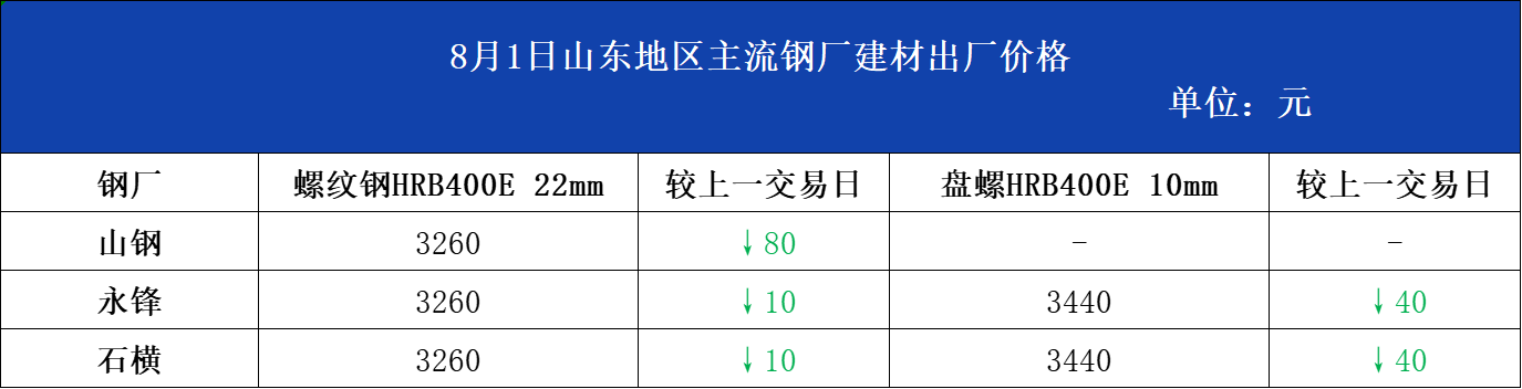 • 7月31日包头亚新建筑钢材出厂价格下调20元