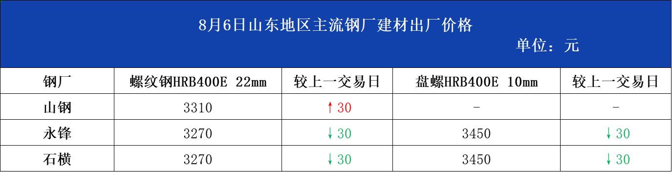 • 8月5日(15:40)山西晋南钢铁建筑钢材出厂价格
