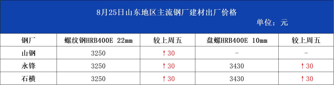 • 8月25日山东地区主流钢厂建材出厂价格