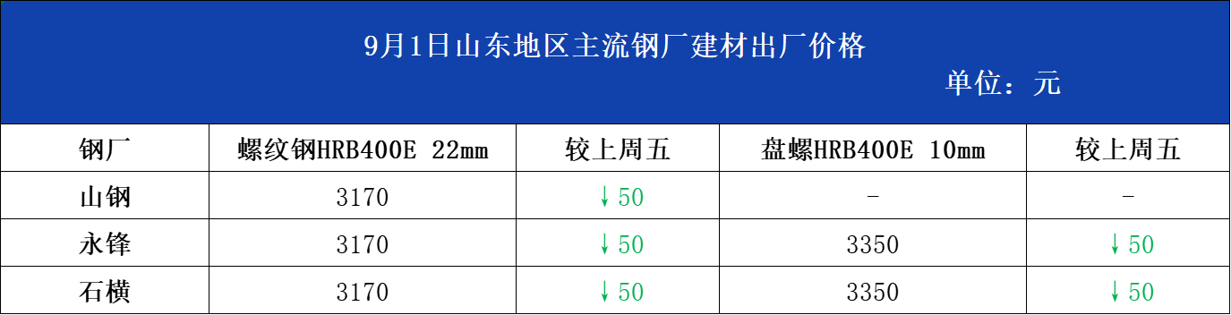• 9月1日包头亚新建筑钢材出厂价格下调20元