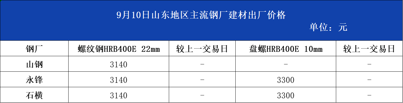 • 9月10日山东地区主流钢厂建材出厂价格